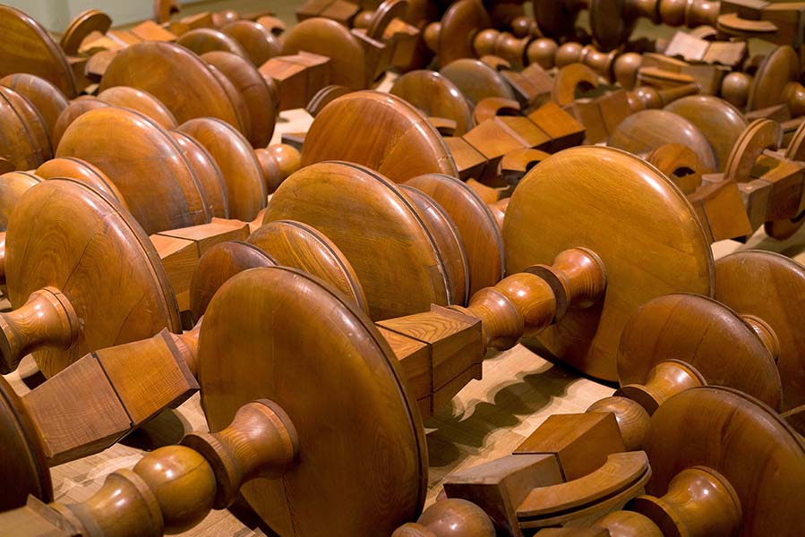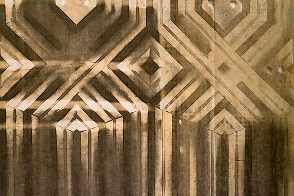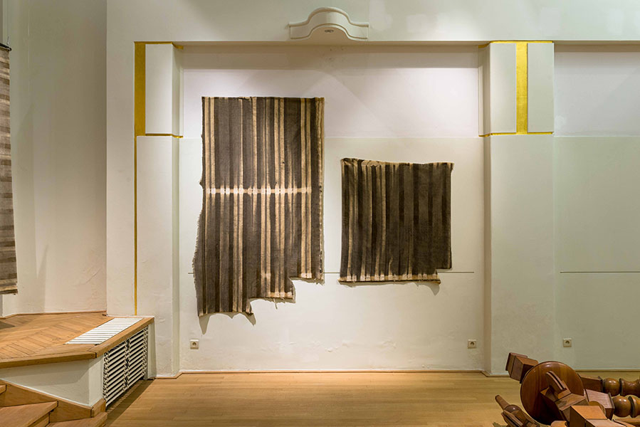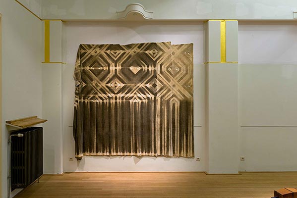 | An intervention that dialogues sensitively with the space and the multiple temporalities of the Omnia Hall, starts from the reality of the wooden walls of the conference room that have been adapted to control the intensity of the sound. Between the brick and concrete structure of the walls and the appearance of the drawing of the wood paneling visible inside the room is a layer of textile material, a white velvet that invisibly covers the entire structure. During the existence of the building, the white velvet membrane became the support that recorded, independently of human will, an image, a trace, which we tried to make visible through our intervention, recovering fragments from this image-membrane, testimonies of a future imagined in the last century that did not really come to pass, a future that has disappeared but that continues to haunt us (an archeology of a future that has not taken place, a future understood in the sense of the concept of hauntology formulated by Mark Fischer). The textile material found in the interstitial spaces of the walls was the support of an image-appearance, an imprint of history outlined in the nothingness of dust, a posthuman image, as if an entire ideology worked without knowing to reveal an image, an image whose substance has autopoietic attributes. The extent of the space of the room, the distance between here and there, between then and now, the time of the 50 years of existence of the Omnia Hall were compressed into the thickness of a few millimetres of material, depicting in our interpretation an image of the world of things reinscribed in the indifference of nature. "The continuous construction and disintegration of the world" referred to by Russian philosopher Nikolai Fedorov can also be perceived in the permanent dislocation and resettlement of the built space, engaged by the relentless tectonics of ideologies. The architectural transformation of the Omnia Hall started after the fall of socialism: for a period of time the building was initially the new democratic Senate's headquarters but in 2004 the institution was relocated to the House of the People, leaving the building abandoned for more than a decade. Thanks to the close collaboration with The National Center of Dance Bucharest(CNDB), architectural remnants from the Omnia Hall are presented at La Loge, which will be returned for an integration into the renovated building upon the exhibition's closure. Elements such as a wooden ornamental structure and acoustic textiles have been transposed to La Loge's temple, stripped of their decorative function and static nature. The vertical axis of the wooden structure (Roots, 2020) has been flipped, liberating its individual elements from their fixed position to interact freely." Wim Waelput |