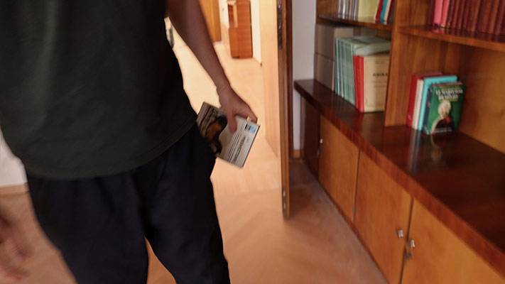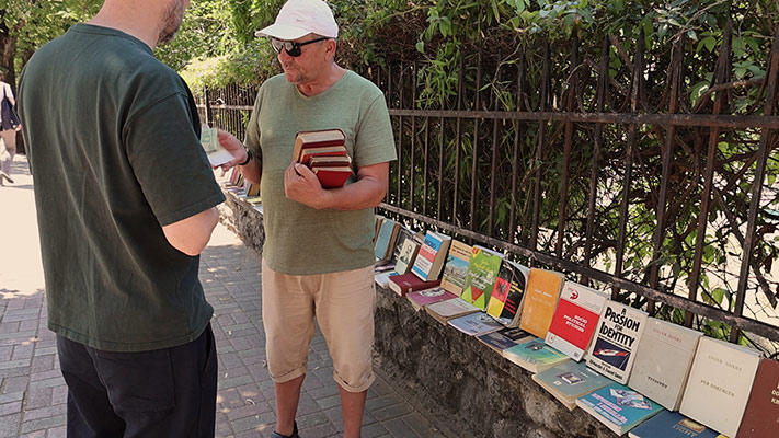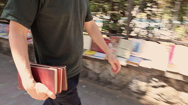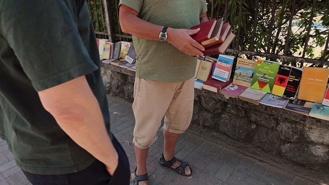 Almost everyday, a street bookseller from Tirana uses the fence of Villa 31, the former residence of Enver Hoxha, as a shelf for his books. All sorts of old books are exhibited on the fence - literature, science, education, politics. Part of these books are publications related to the communist past. We bought 4 books from the street vendor and brought these in the former library of Enver Hoxha. In exchange, we grab one book from the library - La Prehistoire by Andre Leroi-Gourhan. The books we added to the library were: Les drapeaux sur le tours, A. Makarenko; Speeches Conversations Articles 1965-1966, Enver Hoxha; Veprat 5, J. Stalin; Oeuvres choisies, Auteurs Progressistes Francais Modernes. The action echoes the practice of gift-giving in older societies. For us, Andre Leroi-Gourhan’s book, La Prehistoire functions as a link with a different time, a time when humanity experimented with other forms of organisation, of more commonality, of more egalitarianism.